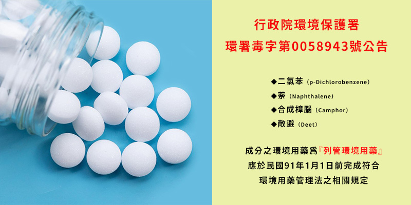 市面上的人工合成樟腦丸,絕大多數都含有刺鼻味道的「奈」與「對二氯苯」成分,將它擺放在小便斗中,只是【以臭治臭】,不但不能真正除臭,吸入過量會有倦怠、頭痛、頭暈等不適,長期暴露可能引起白內障、腎功能失調、中樞神經受損,也會導致蠶豆症患者出現溶血反應。這類樟腦丸雖然有個天然的名稱,但卻具有毒性,聞久了更會聞出病來!所以在先進國家早已禁止使用,而在台灣環保署也早就將樟腦丸列管為環境用藥,使用時必需非常小心!