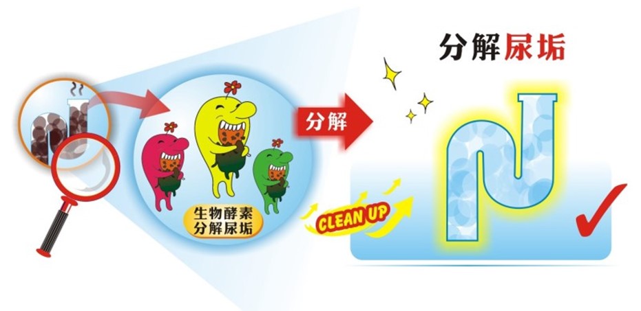 內含珍貴『尿垢分解酵素』,可深入分解頑固尿垢,徹底清除小便斗臭味源頭,除垢才是真除臭!